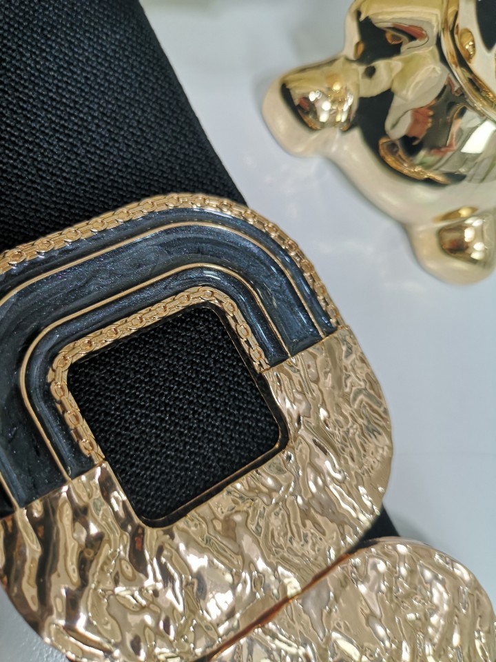 Pasek GUMA CZARNY ZŁOTA KLAMRA 058