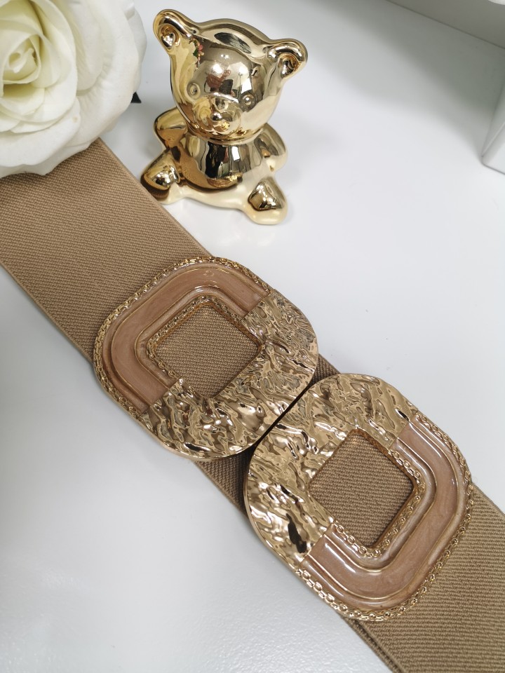 PASEK GUMA BEŻOWY ZŁOTA KLAMRA 059
