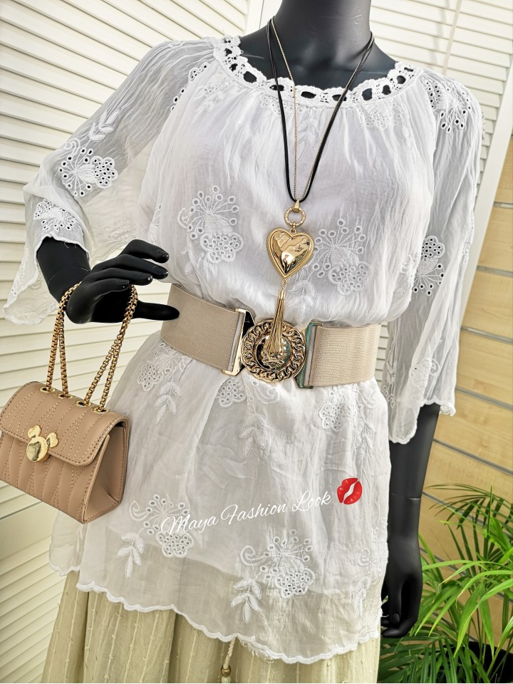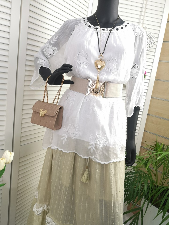 Oversizowa bluzka z jedwabiu z haftem