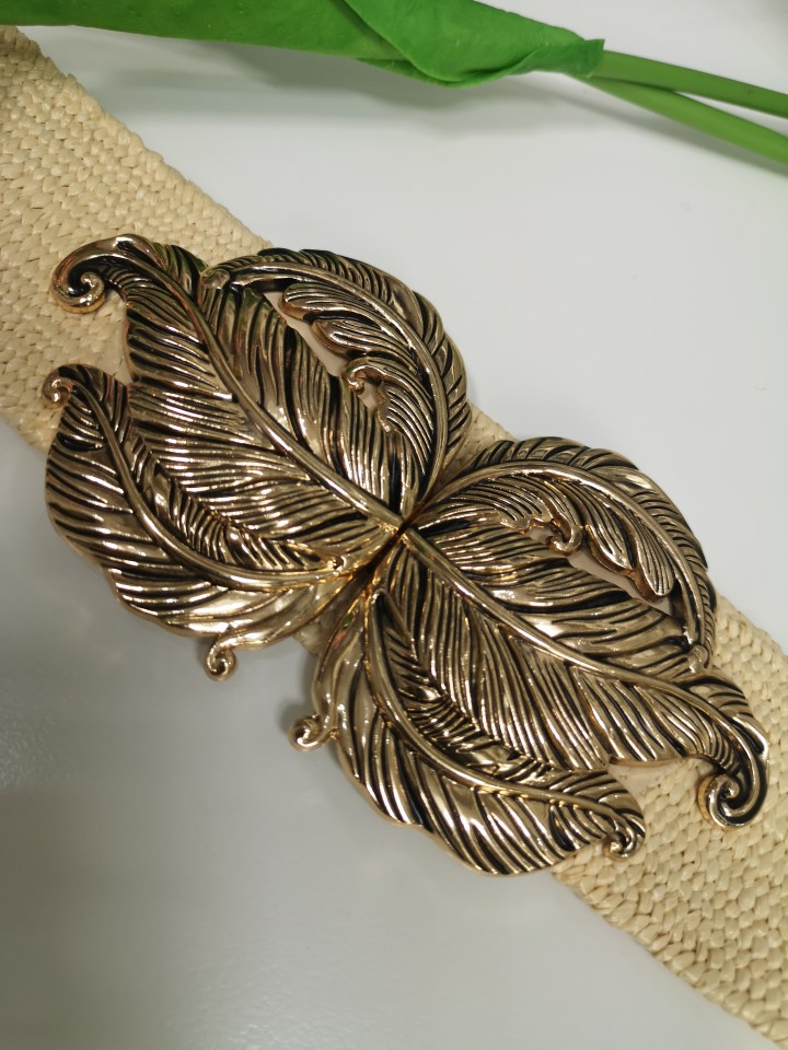 Szeroki pasek z ozdobną ,dużą klamrą .Wykonany z elastycznej wysokogatunkowej gumowej rafii. Ten efektowny model idealnie pasuje do sukienek ,bluzek, tunik, koszul, okryć wierzchnich i spódnic. Pięknie podkreśli talię i dopełni całą stylizację .Totalny atrybut kobiety .