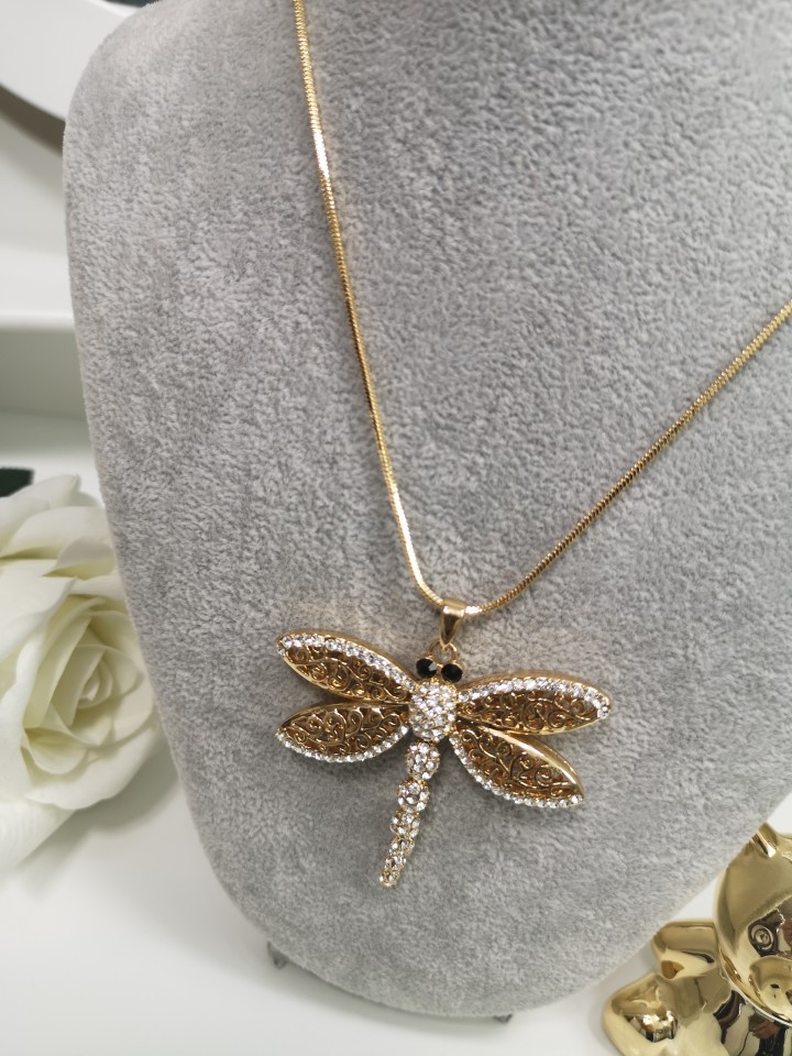 Naszyjnik damski w kolorze złota z ważką
