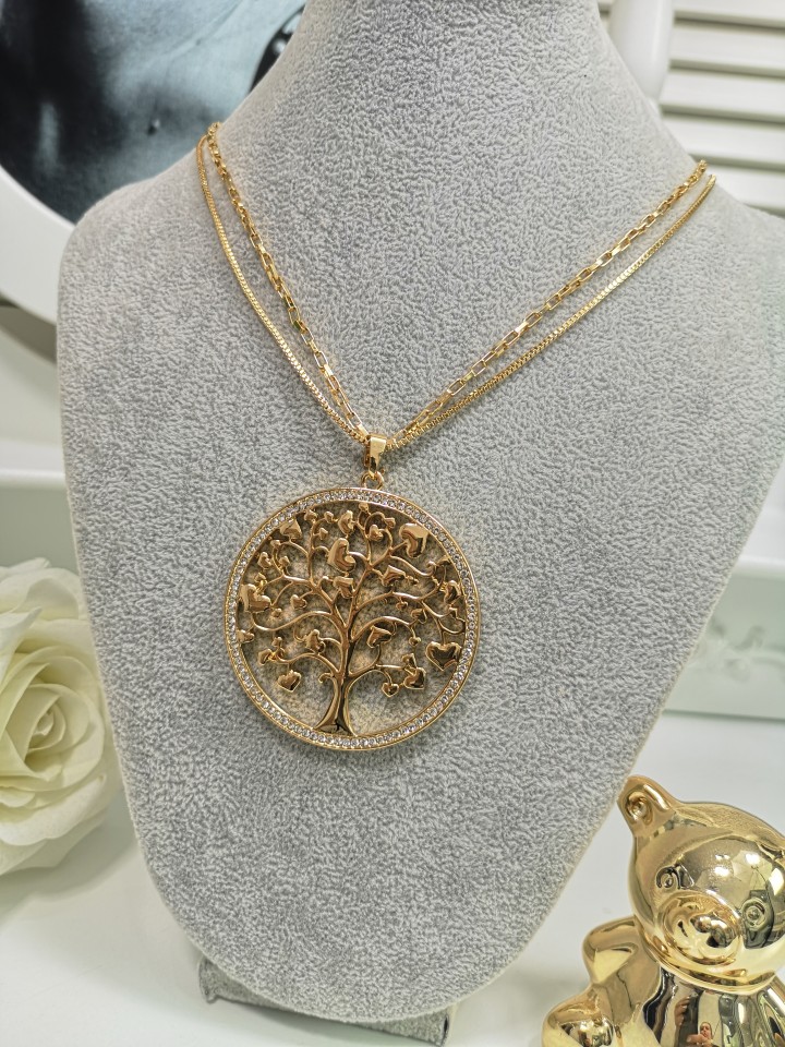 Naszyjnik damski w kolorze złota z drzewkiem szczęścia ,cyrkonie