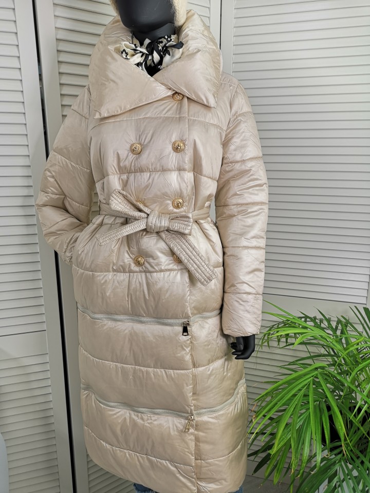 Pikowany płaszczyk VALERIA z regulowaną długością. Wykonany z wysokiej jakości materiału. Wysoki kołnierz typu puffer. Zapinany na piękne biżuteryjne guziki w kolorze złotym oraz zatrzaski. Przewiązany w talii pięknie podkreśli sylwetkę. Długość 3w1 - regulowana poprzez zamki. Po bokach kieszenie zapinane na zamek. Posiada podszewkę. Ocieplany, wypełnienie puchowe syntetyczne. Model zimowy.
