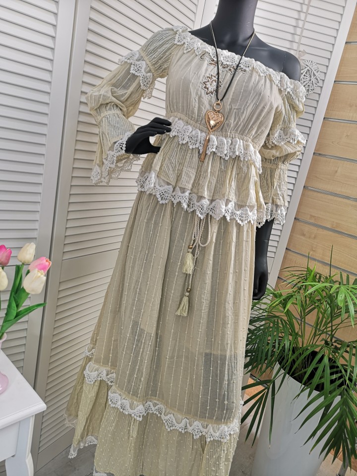 KOMPLET BOHO : BLUZKA hiszpanka i długa SPÓDNICA na gumie w pasie .