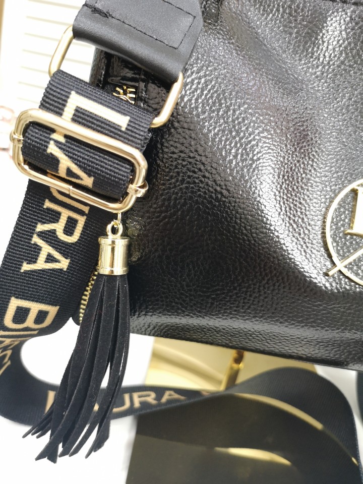 Wyjątkowa torebka, wyróżniająca się oryginalnym fasonem , będzie świetnym dodatkiem na co dzień. Model na odpinanym, regulowanym pasku oraz do ręki .Złote okucia i logowany pasek pięknie podkreślają wyjątkowość tego modelu. Zapinana na suwak. Ozdobiona pięknym logo. Jest to praktyczny i funkcjonalny model, który doskonale skomponuje się z każdą stylizacją.